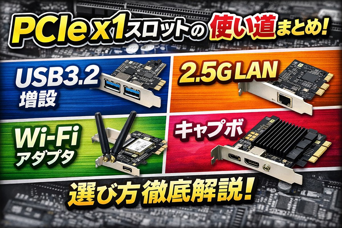 おすすめ情報 2026.02.20 PCIe x1スロットの使い道まとめ|USB3.2増設・2.5G LAN・Wi-Fi・キャプボの選び方 2026.02.18 M.2ヒートシンクの選び方|両面実装・マザボカバー・グラボ直下の干渉(高さ)で失敗しない方法 2026.02.16 NVMe(M.2)SSDの温度は何度が危険?発熱原因と対策|ヒートシンクは必要? 2026.02.12 USB4とThunderbolt 4の違いを完全解説|互換性・見分け方・ケーブル選びで失敗しない方法(20/40Gbps) 2026.02.10 ポーリングレートとは?1000Hz/8000Hzの違いと最適設定|マウス・キーボード・コントローラー自作PC初心者ガイドはこちら Post Share Hatena LINE note URLコピー
