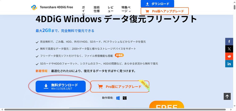 Tenorshare 4DDiG 無料版 ダウンロードページ
