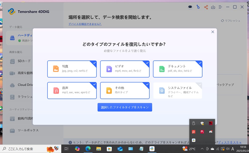 「Tenorshare 4DDiG Free」は、無料ながらもスキャン精度・操作性・UI設計と初心者でも簡単に扱えるデータ復元ソフトです。