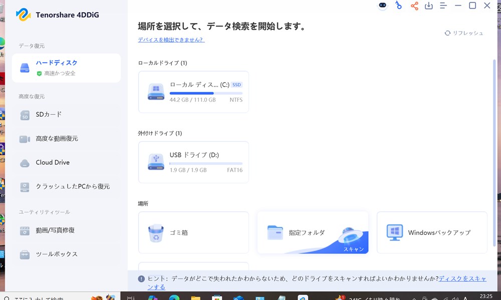 最強の外付けHDDデータ復旧フリーソフト「Tenorshare 4DDiG Free」がおすすめ