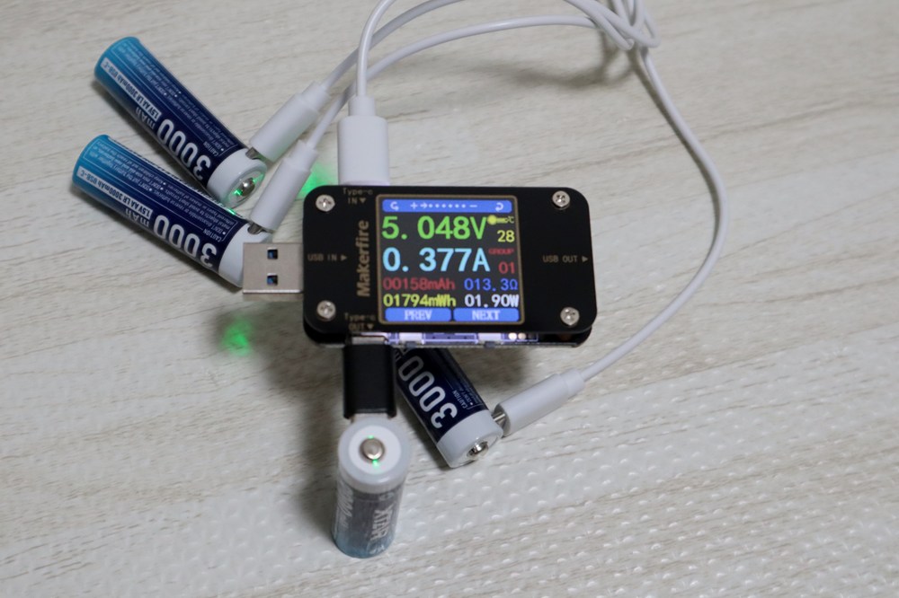 XTARの1.5V充電式リチウム電池を実際にUSB-Cで充電し、電圧電流チェッカーで計測してみました。