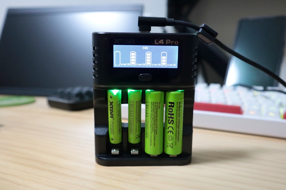 特に1.5Vのリチウムイオン電池を使用する場合、通常の5Vアダプタでは出力が足りないこともありますが、L4 Proはしっかりと制御しながら安全に充電してくれます。